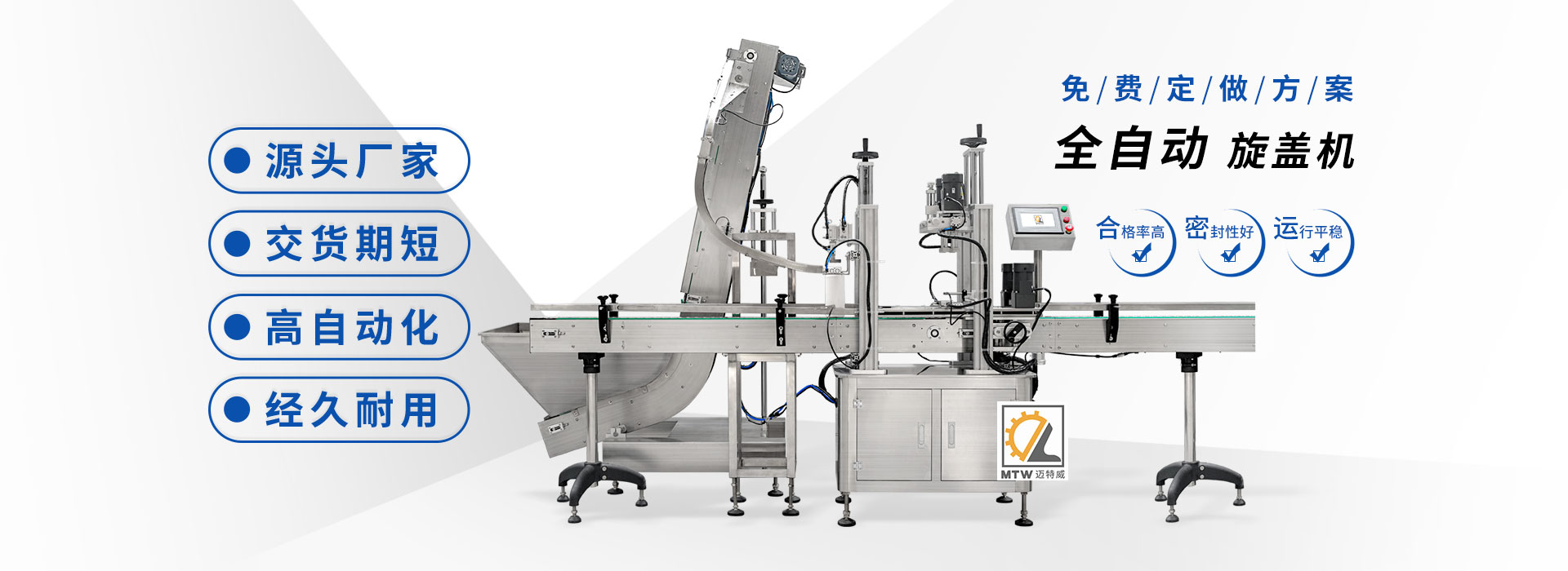 邁特威自動化設(shè)備(天津)有限公司坐落于素有京津明珠之稱的天津·武清區(qū),是國家高新技術(shù)企業(yè),專注生產(chǎn)、研發(fā)、銷售全自動灌裝機、旋蓋機、封口機、貼標(biāo)機等系列產(chǎn)品,立足京津冀、服務(wù)全國,遠(yuǎn)銷海內(nèi)外,團(tuán)隊由行業(yè)高技術(shù)人士組成,為國內(nèi)外食品、日化、糧油、醫(yī)藥等企業(yè)提供滿意的包裝解決方案。 查看詳情